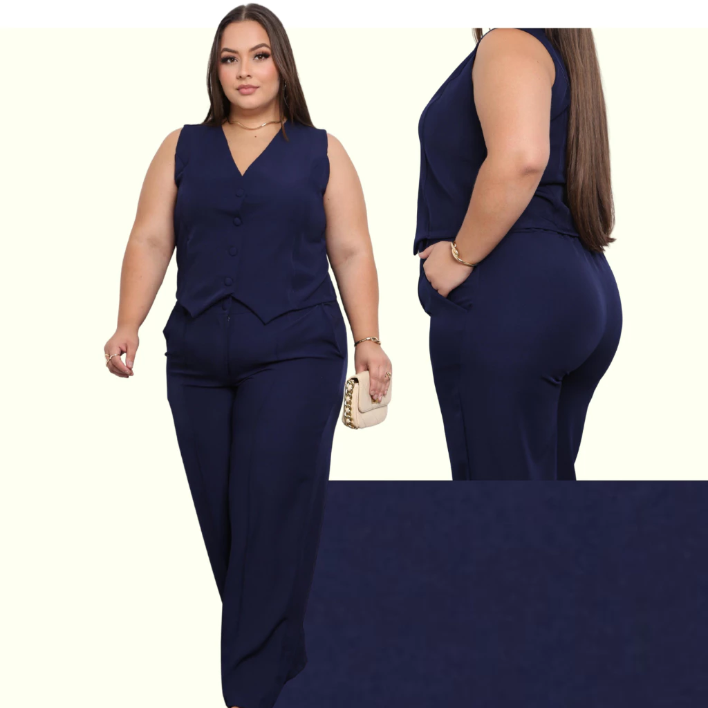 Conjunto Plus Size Feminino Alfaiataria Colete e Calça Elegante